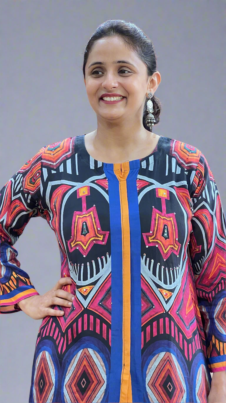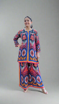 Crafted from soft muslin fabric, this digital printed cord set offers both comfort and style. The breathable material ensures a gentle touch on the skin, while the precise digital printing delivers vibrant, lasting patterns. Ideal for those seeking a blend of elegance and practicality in their wardrobe essentials.