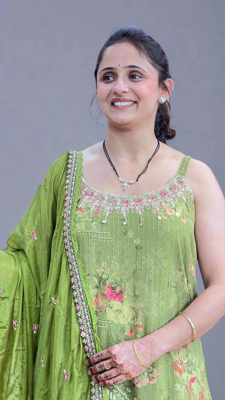 This Premium Viscose Fabric Plazo Suit offers a versatile design with a sleeveless kurta, accompanied by detachable sleeves provided inside for optional stitching. Perfectly crafted for festival occasions, it combines comfort and style, letting you customize your look while enjoying the breathable and elegant viscose material. Ideal for those seeking both tradition and flexibility in their festive wardrobe.