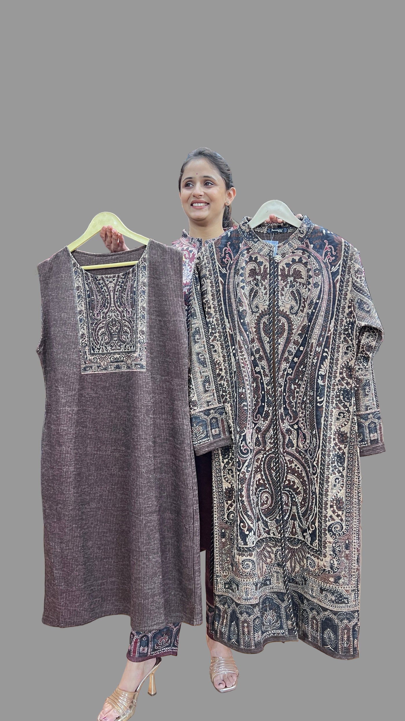 Elevate your wardrobe with this sophisticated Karachi wool shrug suit, a timeless piece that seamlessly blends traditional craftsmanship with contemporary style. Crafted from premium wool, this ensemble features a beautifully tailored shrug that drapes elegantly over a coordinated suit, offering versatility for both formal occasions and refined casual wear. The superior quality wool ensures comfort and durability, while the expert construction reflects the renowned tailoring heritage of Karachi. Perfect for those who appreciate classic elegance with a modern sensibility, this shrug suit makes a distinguished statement at weddings, celebrations, or professional events.