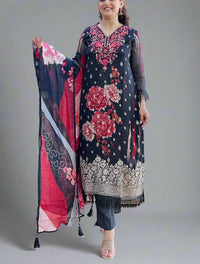 Experience elegance with the Anuya Pakistani Suit crafted from soft organza fabric. This lightweight, sheer material offers a delicate texture and graceful drape, ensuring comfort and sophistication. Ideal for formal occasions, the suit combines traditional design with breathable fabric, making it perfect for warm weather while maintaining a refined appearance.
