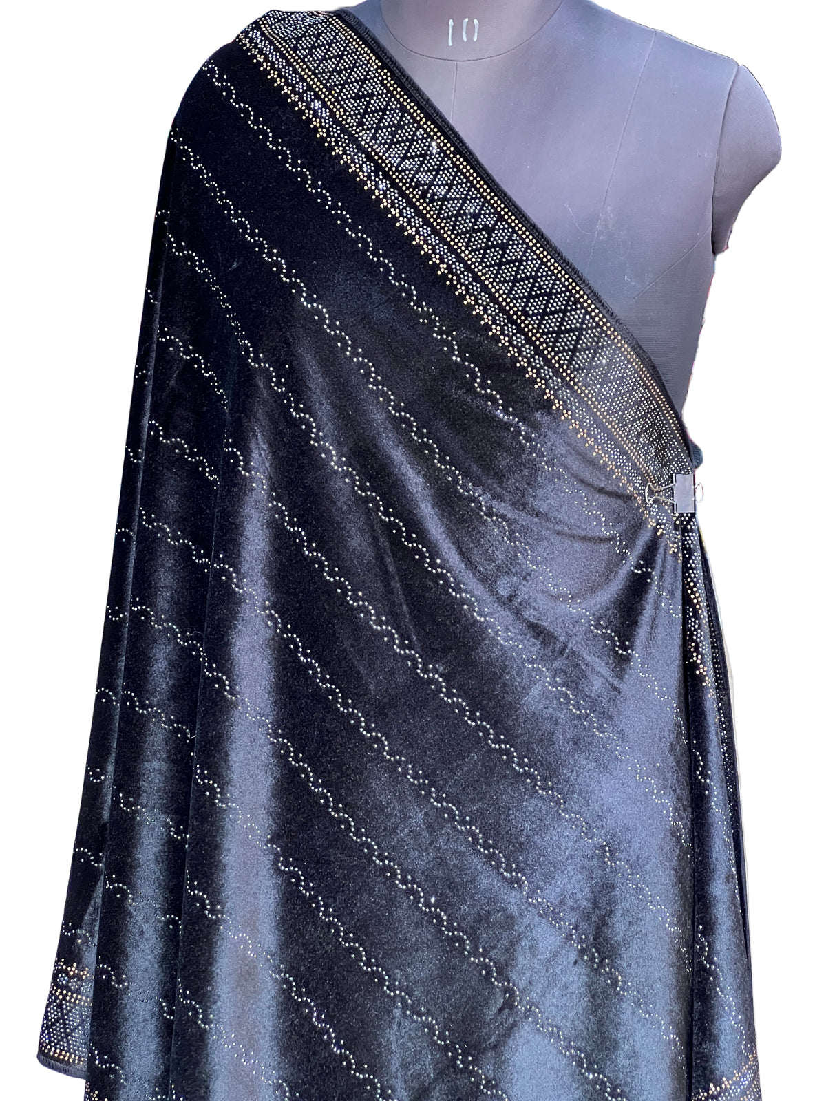 Elevate your ensemble with this luxurious velvet stole, a timeless accessory that seamlessly transitions from day to evening wear. Crafted from sumptuous velvet fabric, it drapes gracefully across the shoulders, adding an instant touch of sophistication and warmth. The rich texture catches light beautifully, creating depth and dimension to any outfit. Perfect for formal occasions, festive celebrations, or layering over everyday wear, this versatile piece combines comfort with refined elegance. Whether paired with traditional attire or contemporary fashion, this stole is an essential addition to any discerning wardrobe.