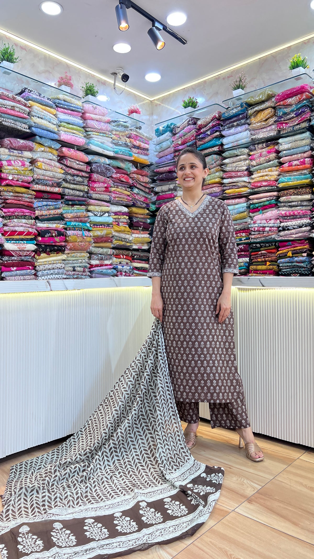 Elevate your everyday style with this cotton printed suit, crafted from breathable, premium-quality fabric. The intricate print design adds a contemporary edge to traditional tailoring, making it perfect for both casual gatherings and semi-formal occasions. The relaxed fit ensures comfort throughout the day, while the refined detailing reflects the craftsmanship of ethnic wear. Ideal for those who appreciate versatility without compromising on elegance. Pair with traditional accessories or modern pieces to create your signature look.