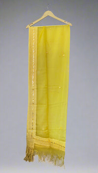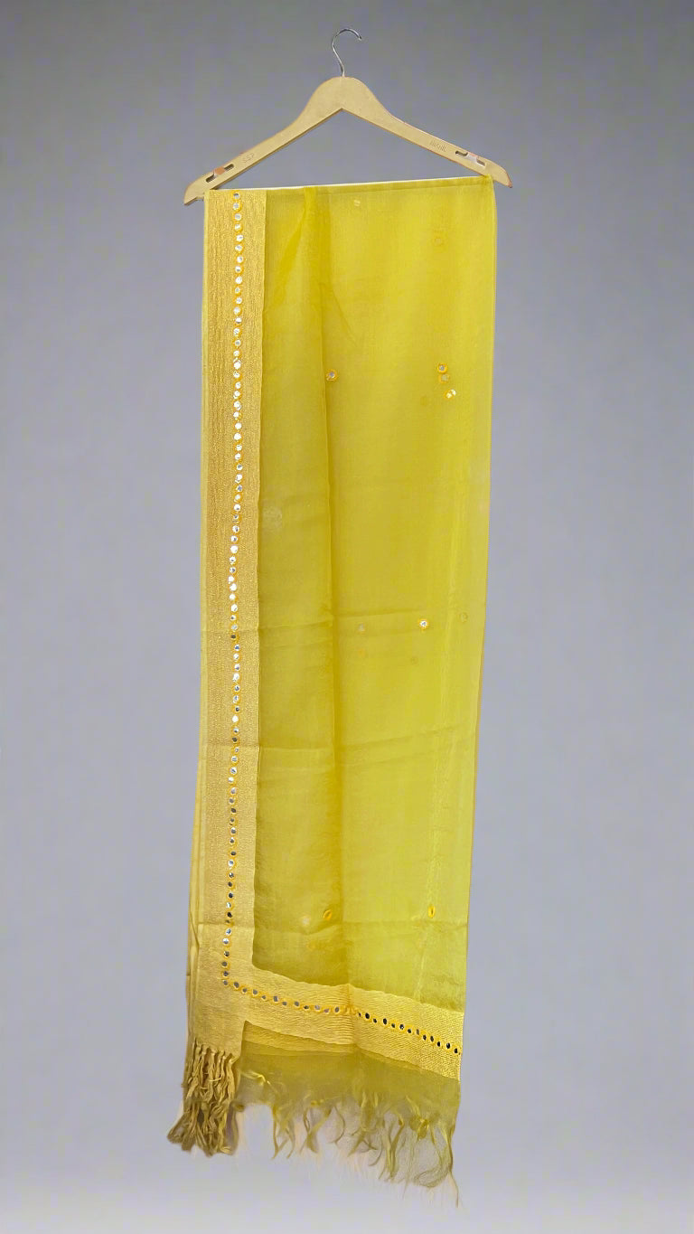 Elevate your ensemble with this Foil Work Tissue Dupatta, expertly crafted to add a subtle shimmer to your look. Made from lightweight tissue fabric, it offers a delicate, airy feel perfect for all-day wear. The intricate foil work detail enhances its elegance, making it an ideal accessory for festive occasions or sophisticated gatherings. This dupatta seamlessly blends traditional craftsmanship with contemporary style, providing a versatile piece that complements a variety of outfits with refined grace.
