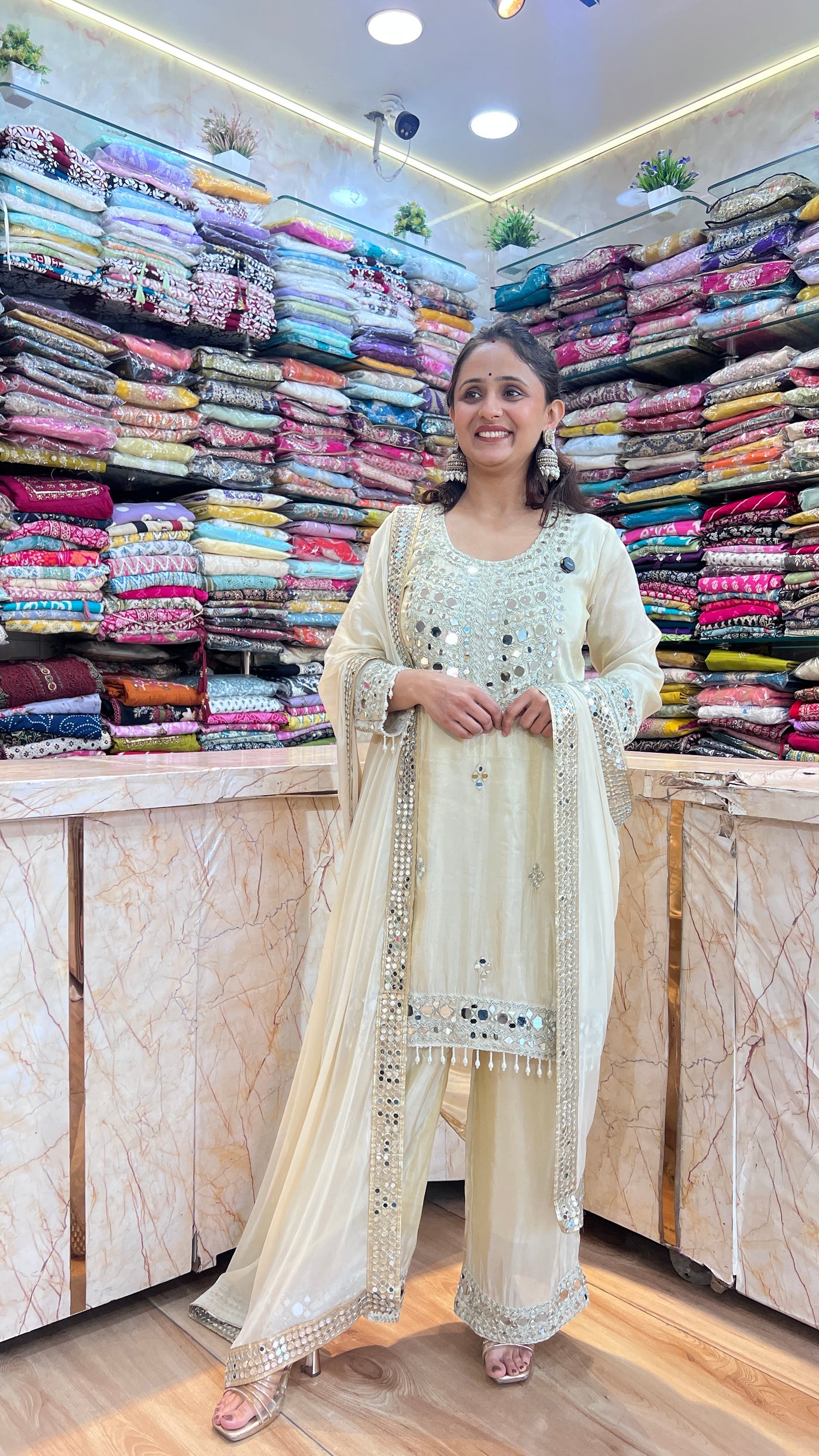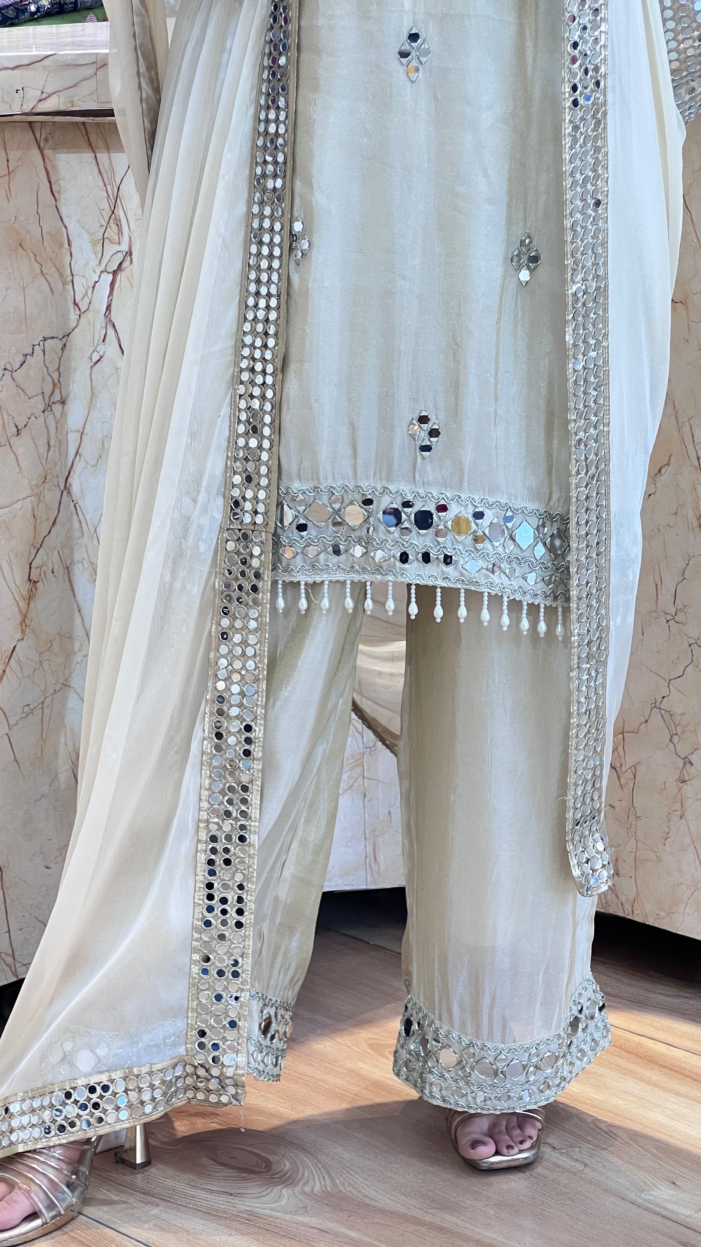 Elevate your ethnic wardrobe with this stunning mirror work plazo suit, a perfect blend of traditional craftsmanship and contemporary style. Intricate mirror embellishments catch light beautifully, creating an eye-catching shimmer that commands attention at weddings, festivals, and celebrations. The comfortable plazo silhouette offers graceful movement while maintaining an elegant drape. Crafted with meticulous attention to detail, this piece showcases skilled artisanship that transforms everyday occasions into memorable moments. Ideal for those who appreciate quality embroidery and timeless ethnic fashion.