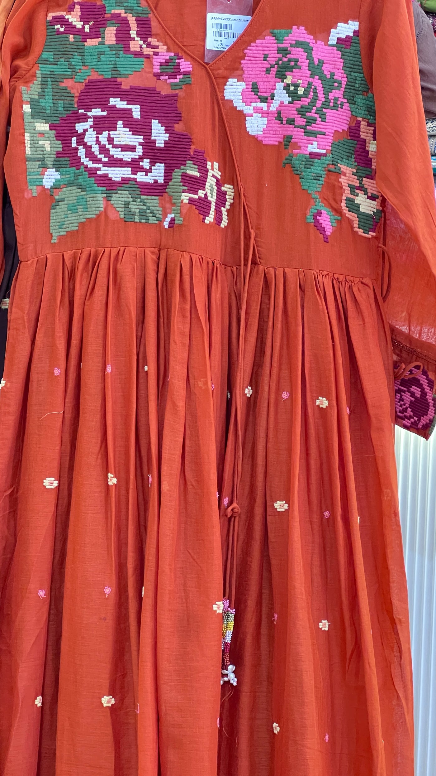 Embrace timeless elegance with this mul cotton anarkali suit, crafted for comfort and grace. The lightweight mul cotton fabric drapes beautifully, perfect for warm weather wear. Adorned with intricate Kullu embroidery, each piece tells a story of traditional craftsmanship. The generous flair of the anarkali silhouette creates a flattering, flowing look that moves with you. Ideal for festive occasions, celebrations, or everyday sophistication. A versatile addition to your ethnic wardrobe that blends heritage artistry with contemporary style.