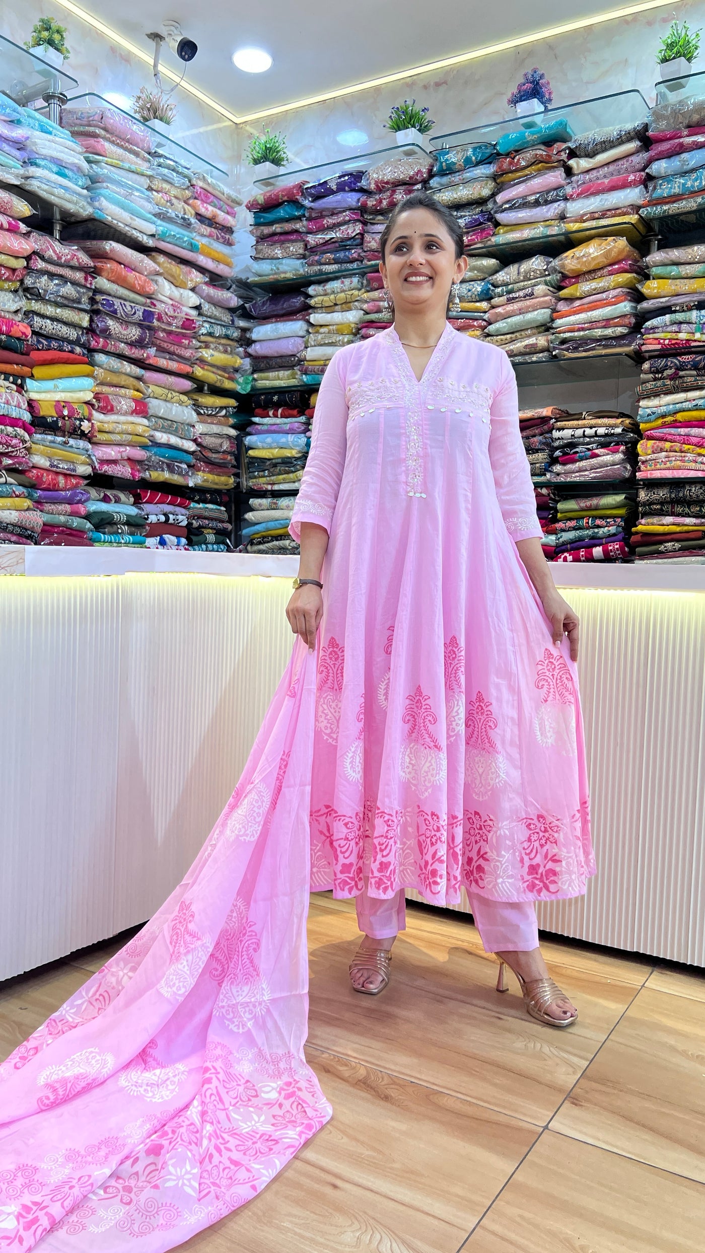 Elegant mul cotton anarkali suit designed for comfort and style. The breathable mul cotton fabric drapes beautifully, perfect for traditional occasions and everyday wear. This classic anarkali silhouette flatters all body types with its flowing design. Ideal for celebrations, festivals, and formal gatherings. The soft, lightweight material ensures all-day comfort in warm weather. A timeless addition to your ethnic wardrobe that combines traditional craftsmanship with contemporary appeal.