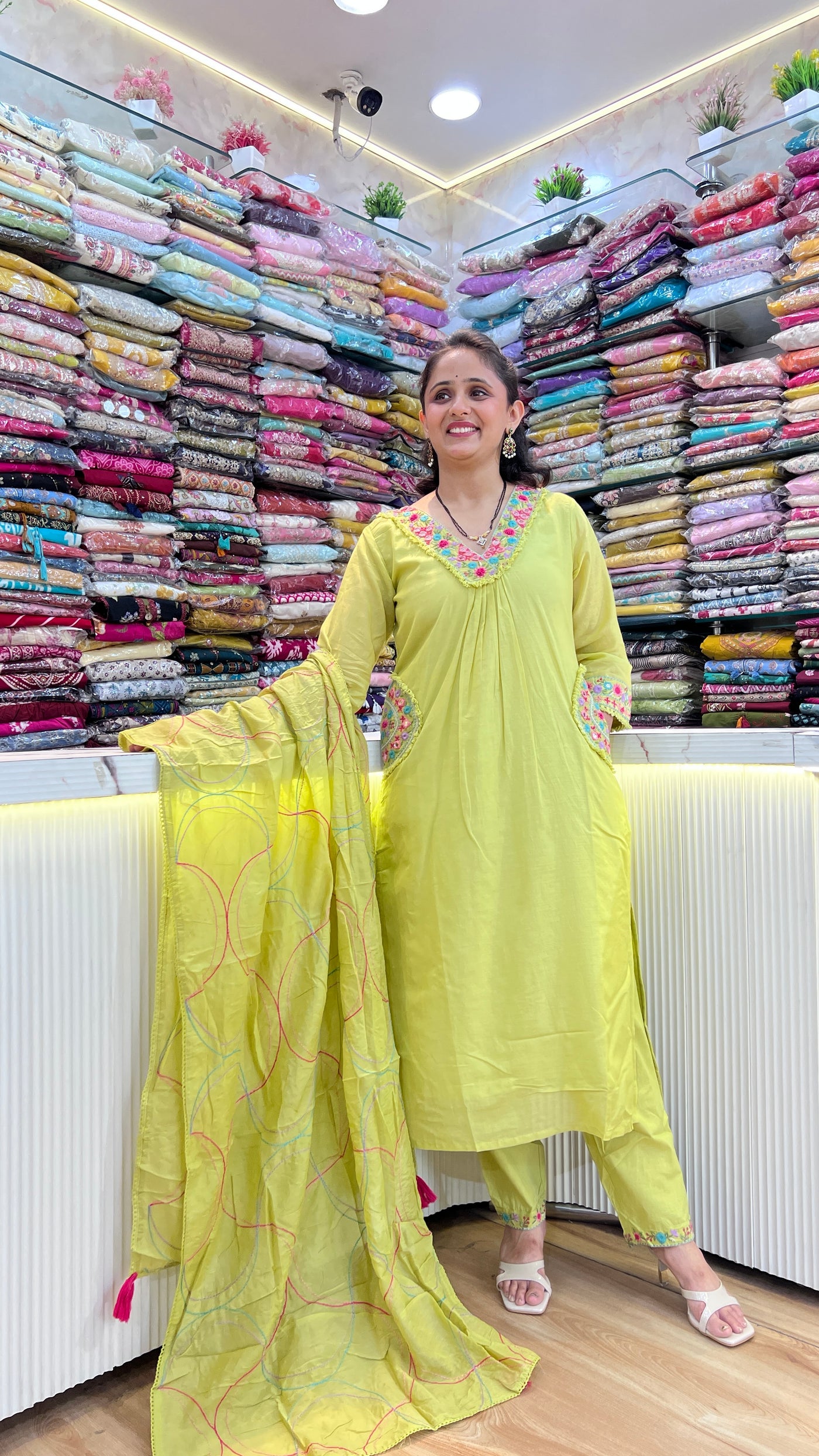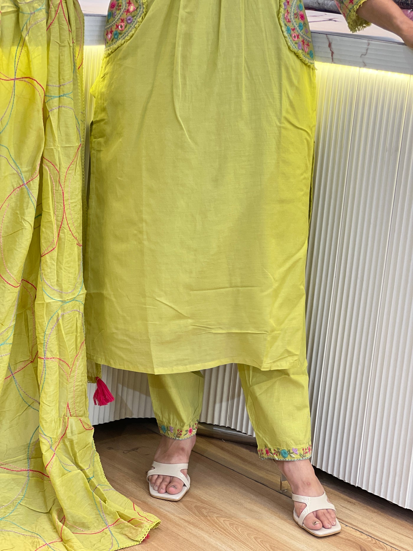 The Mul cotton suit with pocket (YM 60167) offers a breathable fabric composition, enhancing comfort in warm conditions. The inclusion of a pocket provides practical storage, making it suitable for various activities. This garment combines functionality with ease of wear, ideal for both casual and semi-formal settings.