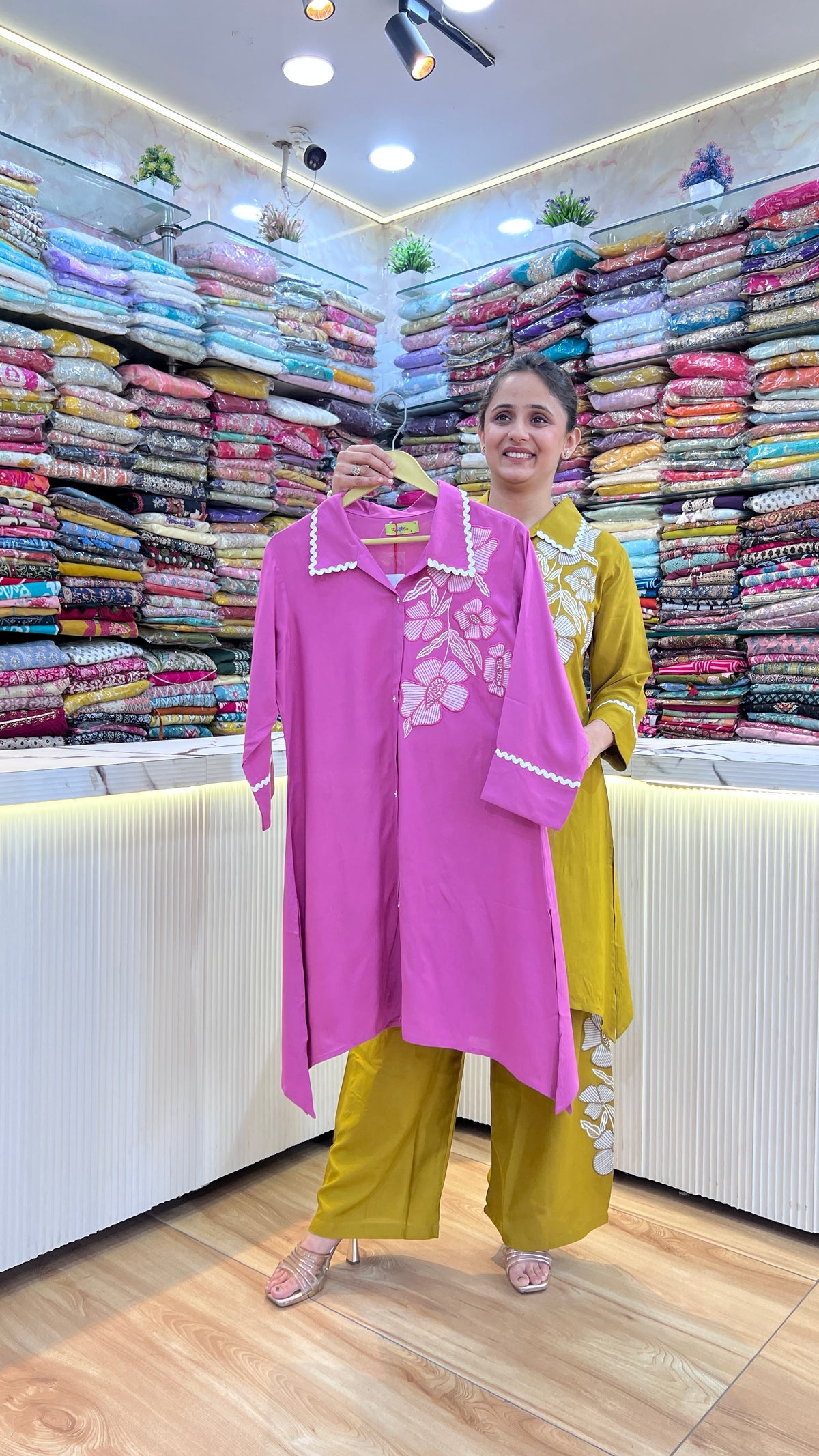 Elevate your ethnic ensemble with this exquisite rayon embroidered cord set. Crafted with meticulous attention to detail, the intricate embroidery adds a touch of traditional elegance to any outfit. The soft rayon fabric drapes beautifully, ensuring comfort throughout the day while maintaining a refined silhouette. Perfect for festive occasions, celebrations, or everyday wear that demands sophistication. A versatile piece that seamlessly blends cultural heritage with contemporary style.