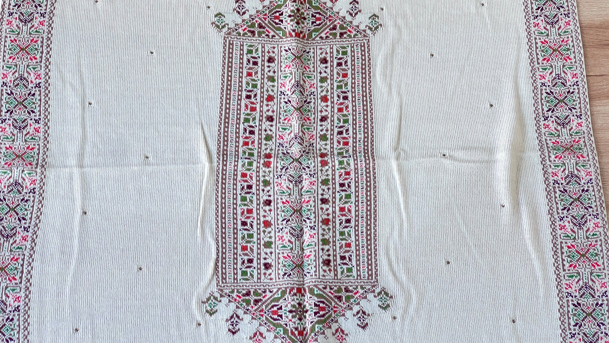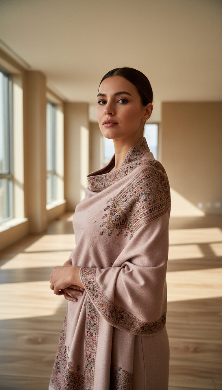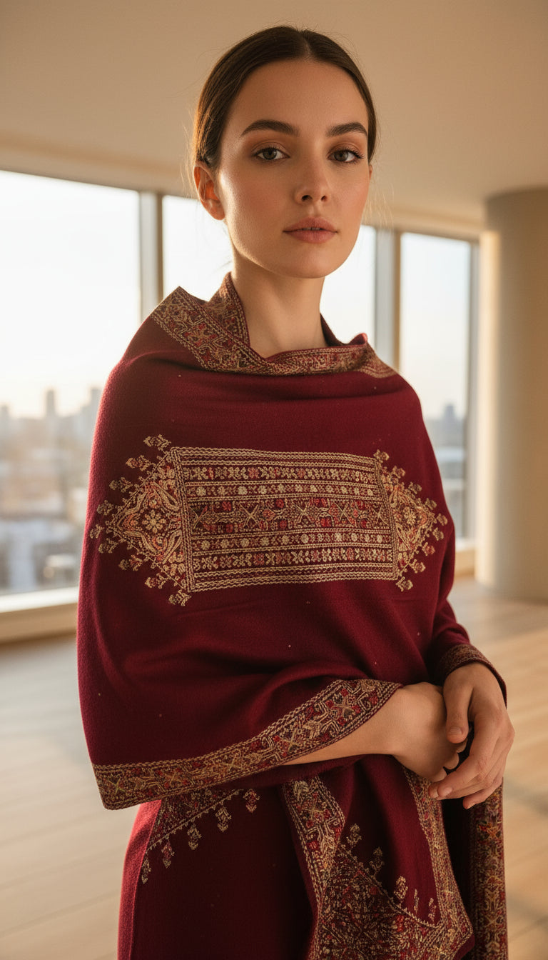 Crafted from the finest quality wool, this Kashmiri weaving stole offers exceptional softness and warmth. Featuring authentic Kashmiri craftsmanship, it showcases intricate weaving patterns that reflect traditional artistry. The superior wool ensures durability and comfort, making this stole a distinguished piece ideal for both styling and warmth.