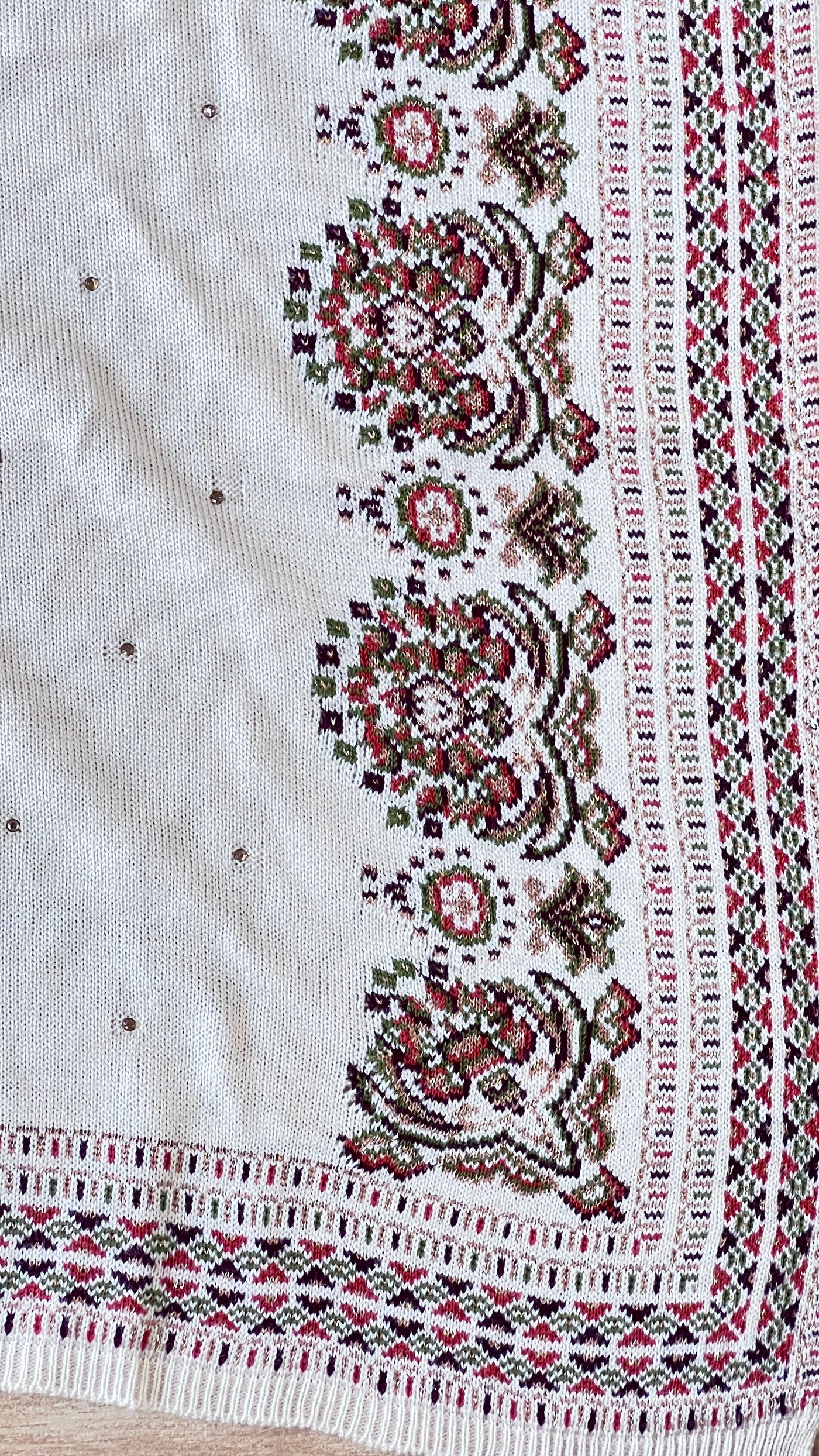 Premium wool kashmiri weaving stole (5514) - 28''width x 78''length / cream